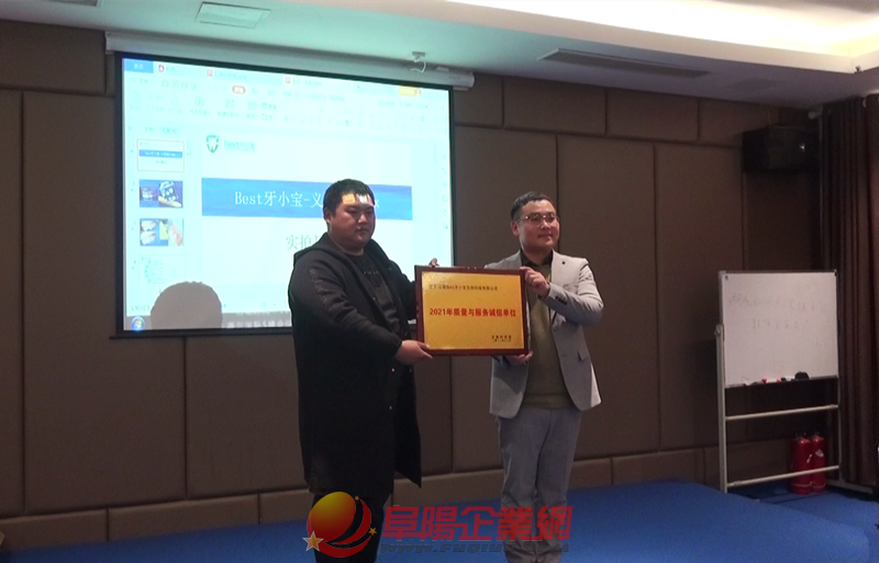 安徽科技報(bào)為Best牙小寶頒發(fā)了2021年度誠(chéng)信單位匾牌。