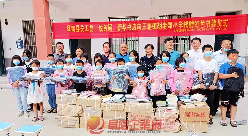 摘要: 5月31日上午,阜南縣關(guān)工委、稅務(wù)局、教育局、新華書(shū)店等單位相關(guān)負(fù)責(zé)人一行帶著價(jià)值22000余元的學(xué)習(xí)用品和紅色書(shū)籍走進(jìn)阜南縣王堰鎮(zhèn)胡老郢小學(xué)開(kāi)展愛(ài)心捐贈(zèng)活動(dòng)。校方負(fù)責(zé)人對(duì)慰問(wèn)團(tuán)一行的到來(lái)表示熱烈的歡迎,對(duì)他 ...
